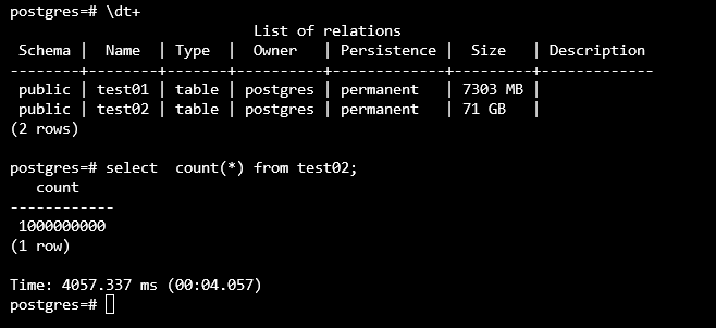 insert into test01 select seq, seq / 100000, md5(seq::text) from generate_series(1, 1000000000) as seq;