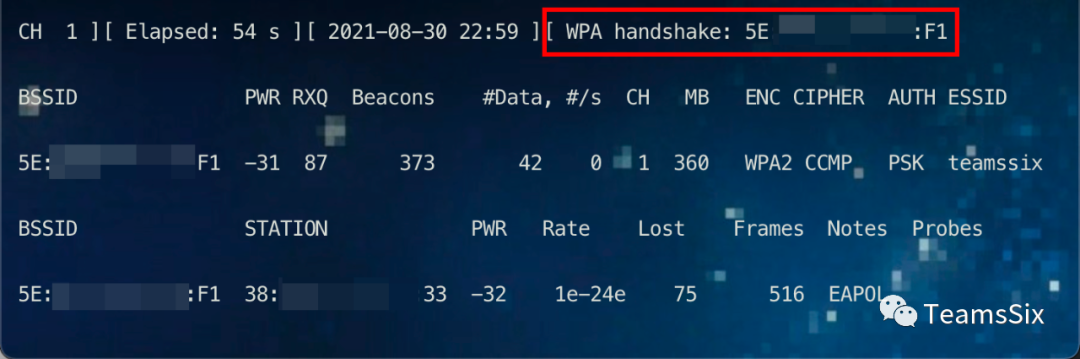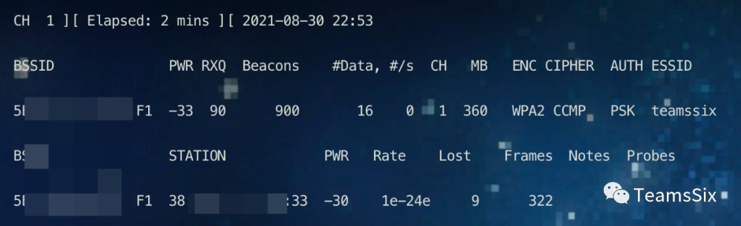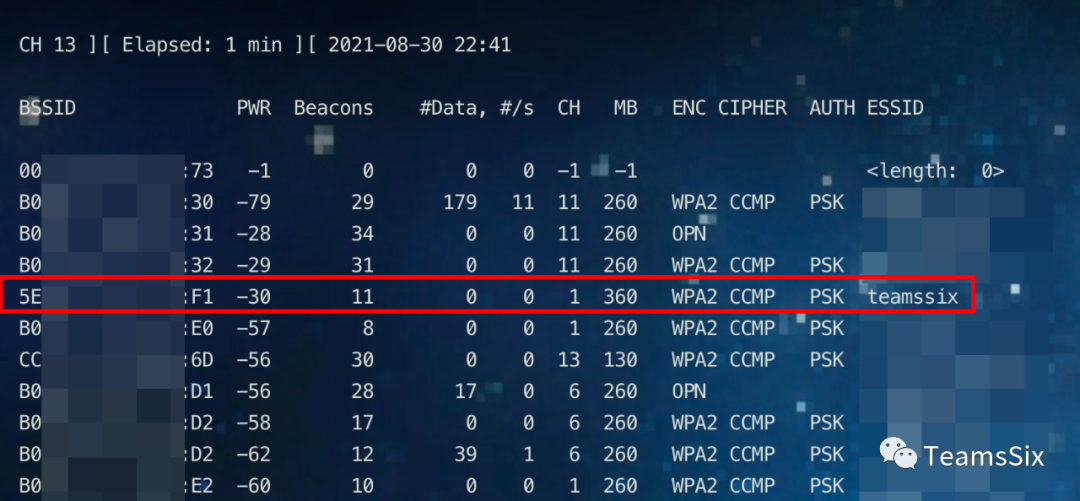 这里以 ssid 为 teamssix 的 WIFI 为例