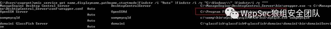 wmic service get name,displayname,pathname,startmode|findstr /i "Auto" |findstr /i /v "C:\Windows\\" |findstr/i /v """
