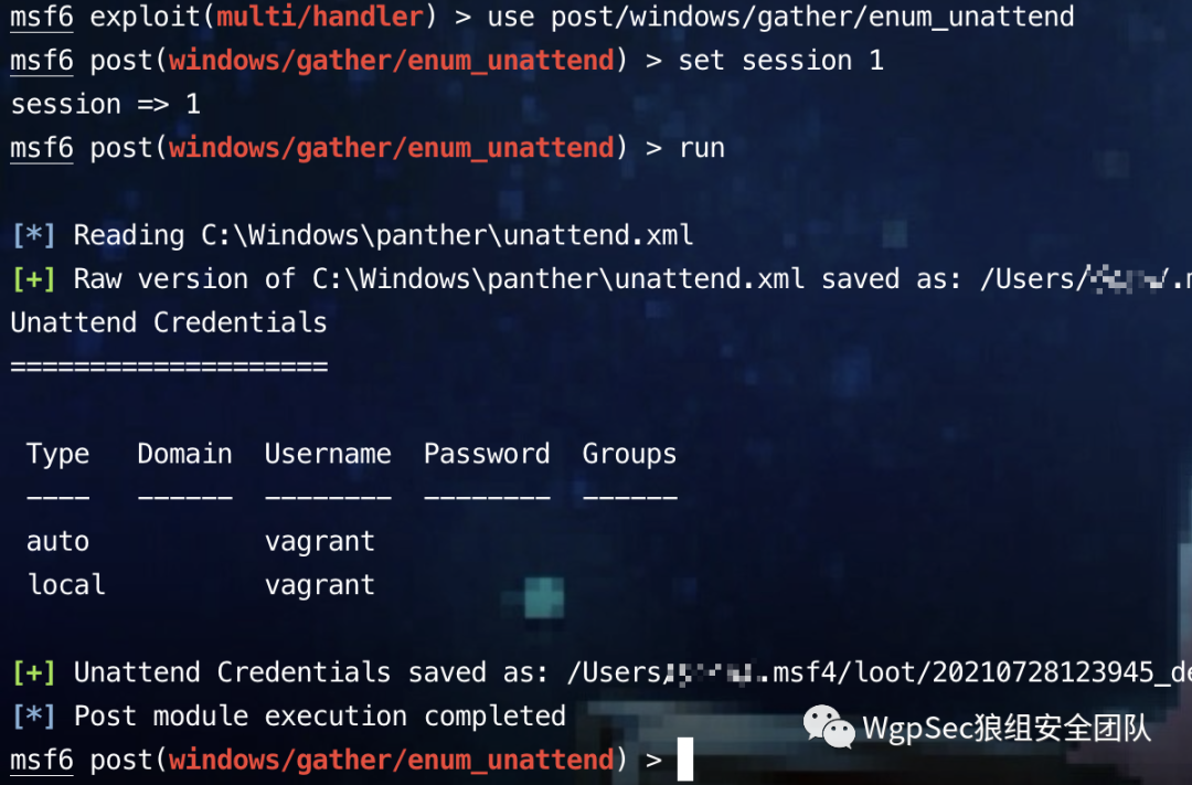 也可以直接使用 MSF 的 post/windows/gather/enum_unattend 模块