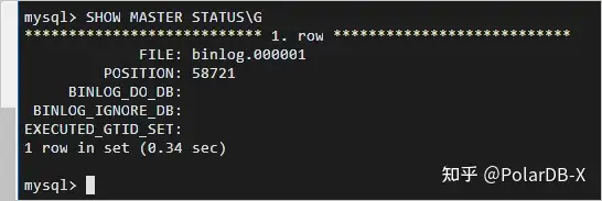 SHOW MASTER STATUS\G返回结果如下,您可查看到源库的binlog File和binlog Position。