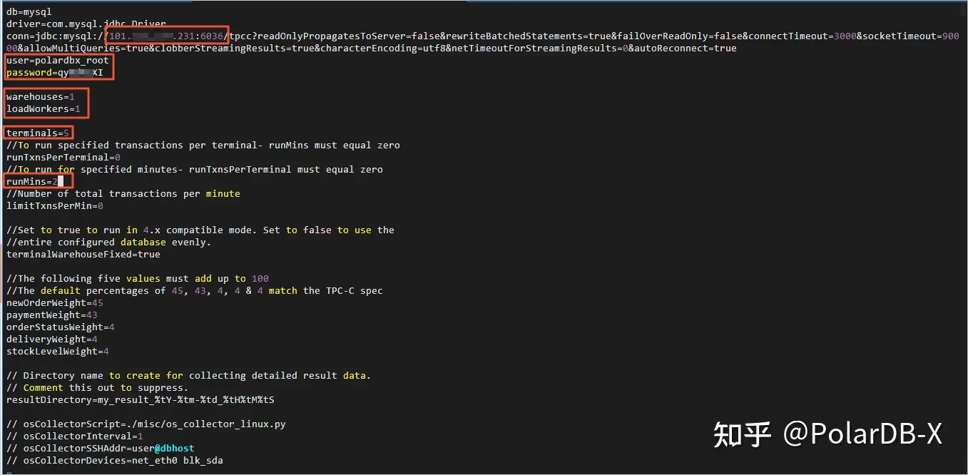 tar xzvf cgaj_benchmarksql.tar.gzg.执行如下命令,编辑props.mysql配置文件。填入对应的PolarDB-X实例连接信息。