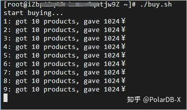 ./buy.sh返回结果如下,您可看到压测脚本启动后,不断有订单被创建出来。