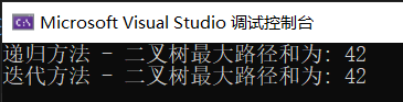 #include <iostream>#include <algorithm>#include <stack>#include <unordered_map>using namespace std;// 二叉树节点结构struct TreeNode {int val;TreeNode* left;TreeNode* right;TreeNode(int x) : val(x), left(nullptr), right(nullptr) {}};int maxPathSumRecursive(TreeNode* root, int& maxSum) {if (root == nullptr) {return 0;}int leftMax = max(maxPathSumRecursive(root->left, maxSum), 0);int rightMax = max(maxPathSumRecursive(root->right, maxSum), 0);int currentMax = root->val + leftMax + rightMax;maxSum = max(maxSum, currentMax);// 返回以当前节点为路径终点的最大路径和return root->val + max(leftMax, rightMax);}int maxPathSumRecursive(TreeNode* root) {int maxSum = INT_MIN;maxPathSumRecursive(root, maxSum);return maxSum;}int maxPathSumIterative(TreeNode* root) {if (root == nullptr) {return 0;}int maxSum = INT_MIN; // 存储最大路径和的全局变量stack<TreeNode*> nodeStack;TreeNode* curr = root;unordered_map<TreeNode*, bool> visited;while (curr || !nodeStack.empty()) {while (curr && !visited[curr]) {nodeStack.push(curr);curr = curr->left;}curr = nodeStack.top();if (visited[curr]) {int leftMax = max(maxPathSumIterative(curr->left), 0);int rightMax = max(maxPathSumIterative(curr->right), 0);int currentMax = curr->val + leftMax + rightMax;maxSum = max(maxSum, currentMax);nodeStack.pop();curr = nullptr;}else {visited[curr] = true;curr = curr->right;}}return maxSum;}int main() {// 创建二叉树TreeNode* root = new TreeNode(-10);root->left = new TreeNode(9);root->right = new TreeNode(20);root->right->left = new TreeNode(15);root->right->right = new TreeNode(7);int resultRecursive = maxPathSumRecursive(root);int resultIterative = maxPathSumIterative(root);cout << "递归方法 - 二叉树最大路径和为: " << resultRecursive << endl;cout << "迭代方法 - 二叉树最大路径和为: " << resultIterative << endl;return 0;}