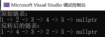 #include <iostream>struct ListNode {int val;ListNode* next;ListNode(int x) : val(x), next(nullptr) {}};// 反转链表的一部分,从位置 m 到 nListNode* reverseBetween(ListNode* head, int m, int n) {if (!head || m == n) {return head;}ListNode dummy(0);dummy.next = head;ListNode* prev = &dummy;// 移动到需要反转的起始位置for (int i = 1; i < m; ++i) {prev = prev->next;}// 反转局部区间ListNode* current = prev->next;for (int i = m; i < n; ++i) {ListNode* temp = current->next;current->next = temp->next;temp->next = prev->next;prev->next = temp;}return dummy.next;}// 打印链表void printList(ListNode* head) {ListNode* current = head;while (current) {std::cout << current->val << " -> ";current = current->next;}std::cout << "nullptr" << std::endl;}int main() {// 创建一个示例链表:1 -> 2 -> 3 -> 4 -> 5ListNode* head = new ListNode(1);head->next = new ListNode(2);head->next->next = new ListNode(3);head->next->next->next = new ListNode(4);head->next->next->next->next = new ListNode(5);std::cout << "原始链表:" << std::endl;printList(head);int m = 2; // 起始位置int n = 4; // 结束位置// 调用反转函数head = reverseBetween(head, m, n);std::cout << "反转后的链表:" << std::endl;printList(head);// 释放链表内存while (head) {ListNode* temp = head;head = head->next;delete temp;}return 0;}
