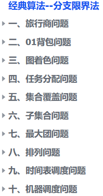 #include <iostream>#include <vector>#include <set>#include <algorithm>using namespace std;struct SubsetCoverProblem {int n; // 全集的大小vector<set<int>> subsets; // 子集合的集合};int estimateCost(const SubsetCoverProblem& problem, const set<int>& covered) {int remainingElements = problem.n - covered.size();return remainingElements;}void branchAndBound(SubsetCoverProblem problem, set<int> covered) {if (covered.size() == problem.n) {// 找到一个解,处理方式可以根据需求进行修改cout << "找到一个解:" << endl;for (const int& subsetIndex : covered) {cout << "选择子集 " << subsetIndex << endl;}return;}// 计算当前节点的代价int nodeCost = estimateCost(problem, covered);// 根据估算的代价排序子集合,选择代价最小的子集进行扩展vector<pair<int, int>> subsetCosts; // 子集索引及对应的代价for (int i = 0; i < problem.subsets.size(); ++i) {if (covered.find(i) == covered.end()) {set<int> newCovered = covered;newCovered.insert(i);int cost = estimateCost(problem, newCovered);subsetCosts.push_back({i, cost});}}sort(subsetCosts.begin(), subsetCosts.end(), [](const pair<int, int>& a, const pair<int, int>& b) {return a.second < b.second;});for (const auto& subsetCost : subsetCosts) {int subsetIndex = subsetCost.first;set<int> newCovered = covered;newCovered.insert(subsetIndex);branchAndBound(problem, newCovered);}}int main() {SubsetCoverProblem problem;// 初始化问题数据结构,包括全集大小 n 和子集合的集合 subsetsset<int> covered; // 初始覆盖集合为空branchAndBound(problem, covered);return 0;}