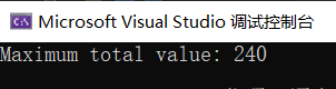 #include <iostream>#include <vector>#include <algorithm>using namespace std;// 定义物品结构体,包含重量和价值struct Item {int weight;int value;};// 自定义比较函数,用于按单位价值从大到小排序bool compareItems(Item item1, Item item2) {double ratio1 = static_cast<double>(item1.value) item1.weight;double ratio2 = static_cast<double>(item2.value) item2.weight;return ratio1 > ratio2;}// 贪心算法解决分数背包问题double fractionalKnapsack(vector<Item>& items, int capacity) {// 按单位价值排序sort(items.begin(), items.end(), compareItems);double totalValue = 0.0;int remainingCapacity = capacity;for (const Item& item : items) {if (remainingCapacity >= item.weight) {// 放入整个物品totalValue += item.value;remainingCapacity -= item.weight;} else {// 放入部分物品totalValue += static_cast<double>(remainingCapacity) * (static_cast<double>(item.value) item.weight);break;}}return totalValue;}int main() {vector<Item> items = {{10, 60}, {20, 100}, {30, 120}};int capacity = 50;double maxTotalValue = fractionalKnapsack(items, capacity);cout << "Maximum total value: " << maxTotalValue << endl;return 0;}