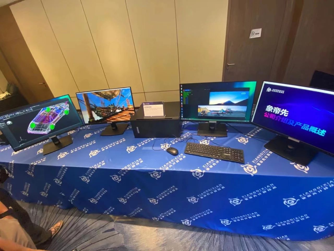 现场,象帝先展示基于统信UOS桌面版的四屏解决方案,同时运行浩辰CAD、Unigine Heaven、4K60FPS视频以及PDF浏览器,具备流畅的性能和卓越的效果。