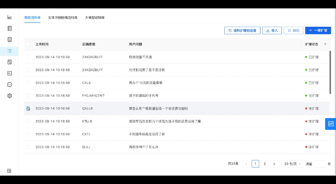 Turing Center借助大模型的能力,可以将结构化或者非结构化的企业知识文档(word、PDF、PPT、聊天记录等)直接导入到机器人知识管理后台,通过收集、整理和更新知识,支持对其分类和标签化、搜索和检索、共享和协作,同时可针对不同行业领域的内容需求快速泛化,自动生成用户问题语料,并一键扩写相似问题,极大提升服务回话解决率和场景覆盖率,快速形成一个博学多识的知识库。