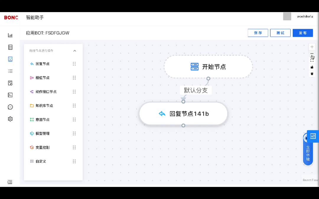 在服务接待流程设计中,基于大模型对市场发展、业务背景的理解,针对不同行业领域生成相应的对话流,全新的可视化对话交互设计工具提供标准化的VUI组件、更丰富的对话策略配置,同时可针对企业的业务配置接口,自定义数据字典,支持配置元数据用于封装接口、存储变量,让交互机器人更贴合真实的的业务能力。