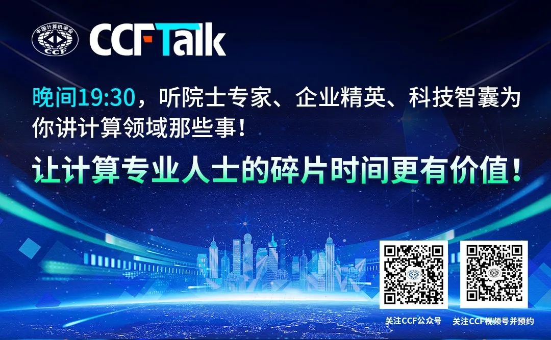 CCF Talk直播间预告将时时发布在CCF公众号及视频号,记得一定要及时关注,获取最新直播信息!
