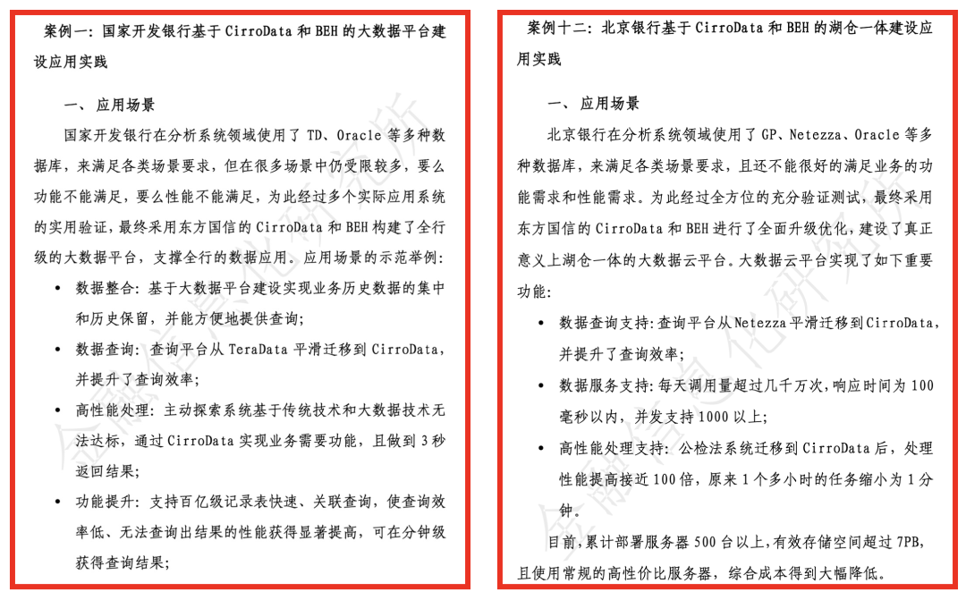 由北京东方国信科技股份有限公司参与编写的《金融业数据库创新发展报告》(2023)在本次会议上正式发布。报告围绕当前业界关注的金融核心系统数据库应用、数据能力提升和开源数据库风险防控三个领域展开分析,为金融业数据库技术创新应用提供参考。“国家开发银行基于CirroData和BEH的大数据平台建设应用实践”,“北京银行基于CirroData和BEH的湖仓一体建设应用实践”作为金融业数据库典型应用案例,入选该报告,也是东方国信在金融领域数字化转型过程中的价值体现。
