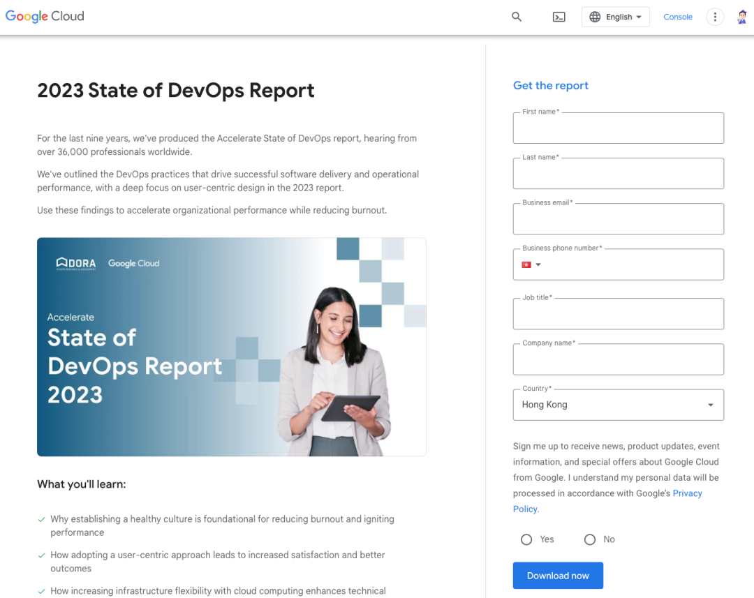 今年获取报告需要先留下联系方式,在收购 DORA 后的第 5 个年头,谷歌云也开始加速了对 DORA 的变现。今年的赞助商相比去年也发生了很大的变化