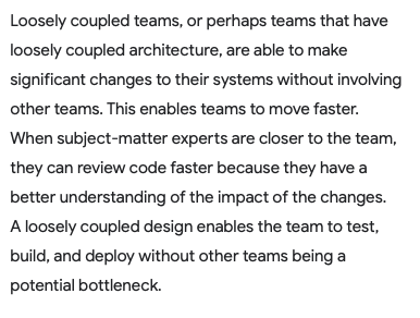 延用了计算机的经典解法 - 分治。松耦合的架构 > 更小的变更 > DORA 四大核心指标的提升。