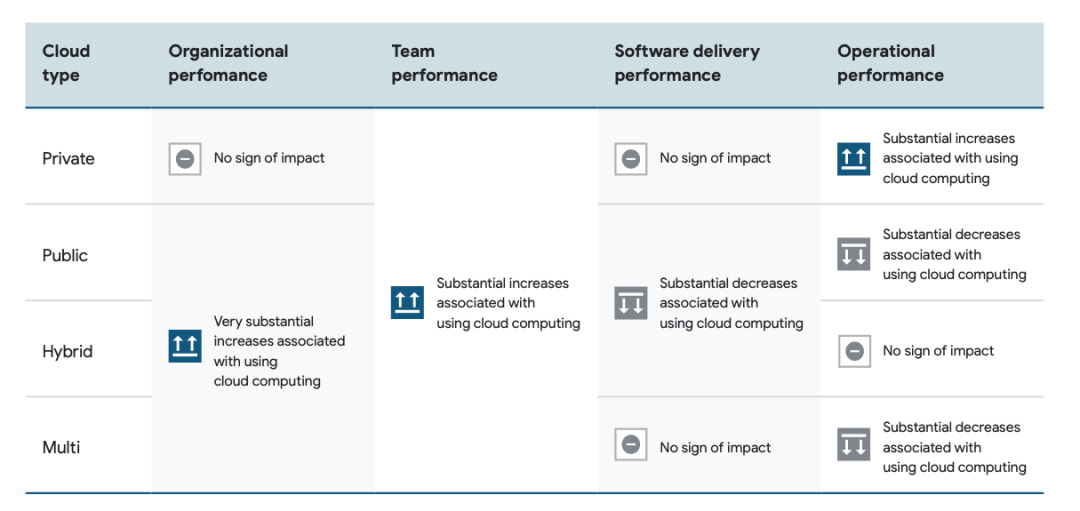 今年的报告里第一次提到了最近兴起的平台工程 (Platform Engineering)。DORA 的主题是研发效能 DevOps,从行业趋势看,这部分工作对应到的就是平台工程团队。平台工程的用户是内部的研发工程师,所以这部分也就出现在第 19 页 User-centric 里。但作为一份研究研发组织的报告,应该可以展开讲讲平台工程,毕竟这是近 10 多年里,继 DevOps SRE 后,终于涌现出来的一个新组织形态。II. 老生常谈的 Cloud