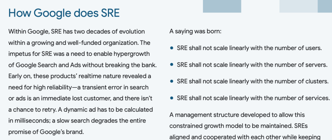 报告里列举了 Cloud 的各种优势,但对于最近业界 Cloud cost 相关的讨论以及伴随着的下云呼声没有涉及,缺少了一点辩证,这是报告出自谷歌云之手的一点偏心吧。除此之外,谷歌的另外一处植入就是谈论自家的 SRE 实践。III. 转型期的 DORA