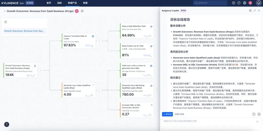 Kyligence Zen:基于 AI 的指标平台,可以帮助用户在云存储或其他 SaaS 工具等多个数据平台上高效构建统一的业务指标体系,并借助 AI 简化业务决策。