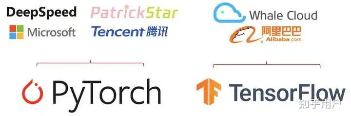 目前部分深度学习框架,例如 Pytorch 和 Tensorflow,没有办法满足超大规模模型训练的需求,于是微软基于 Pytroch 开发了 DeepSpeed,腾讯基于 Pytroch 开发了派大星 PatricStar,达摩院同基于 Tensoflow 开发的分布式框架 Whale。像是华为昇腾的 MindSpore、百度的 PaddlePaddle,还有国内的追一科技 OneFlow 等厂商,对超大模型训练进行了深度的跟进与探索,基于原生的 AI 框架支持超大模型训练。