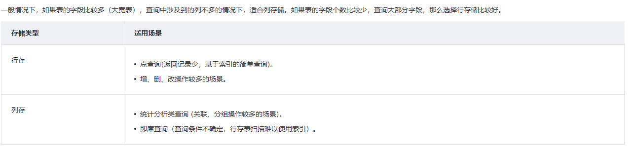 行存表和列存表的选择