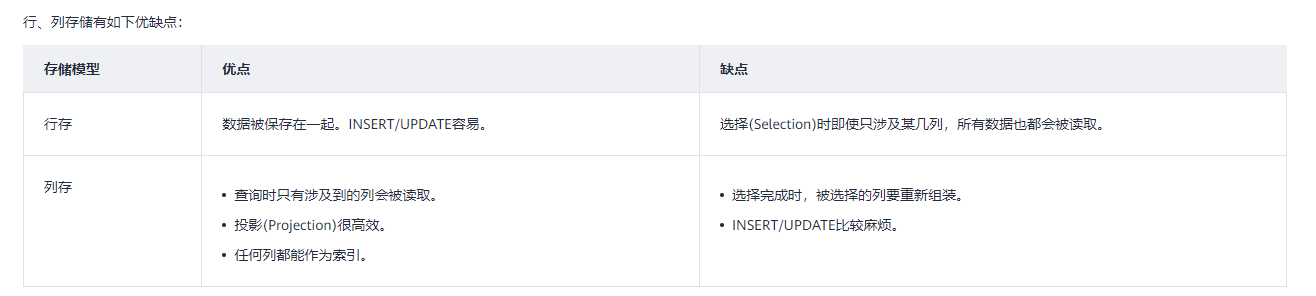 GaussDB支持行列混合存储。行、列存储模型各有优劣,建议根据实际情况选择。
