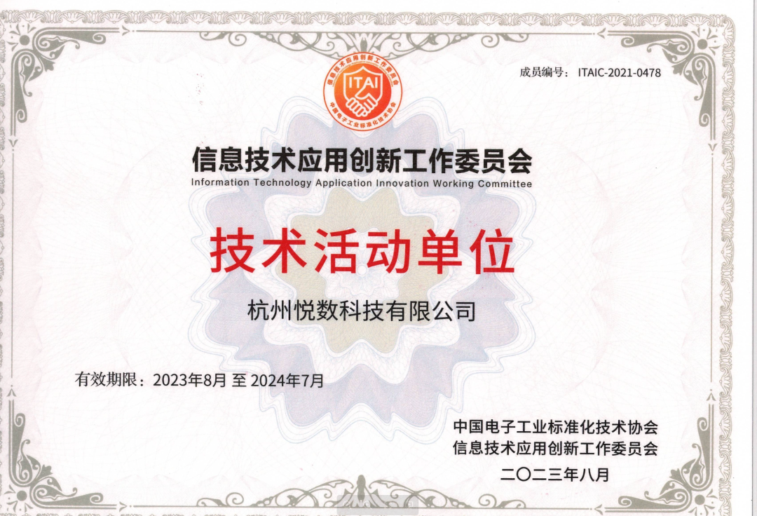 近日,杭州悦数科技有限公司(以下简称“杭州悦数)获得中国电子工业标准化技术协会信息技术应用创新工作委员会(以下简称“信创工委会”)颁发的证书,正式成为信创工委会「技术活动单位」。