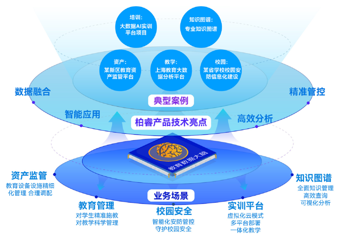 柏睿数据以“全内存分布式计算引擎”为基础的新一代Data+AI(数据智能)技术产品体系,具备数据融合、智能应用、高校分析、精准管控等核心能力,可助力高校构建智慧教育大脑,赋能高校资产监管、教育管理、校园安全、实训平台等多元化业务场景,推动教育从质变,迈向“智”变。