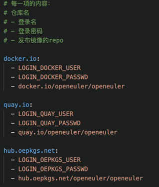 执行多仓库发布命令之前需要预先配置好每个registry的登录用户名和密码环境变量,如LOGIN_DOCKER_USER和LOGIN_DOCKER_PASSWD等。