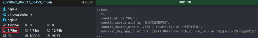 查询 SQL 取自 Superset 业务报表 《社区用户 APP 使用时长》