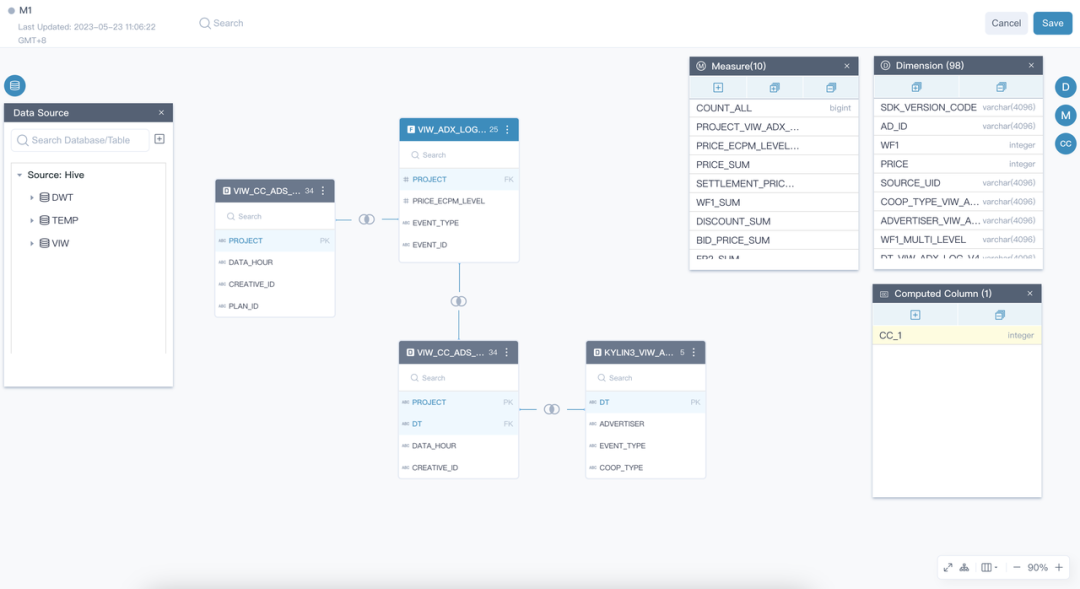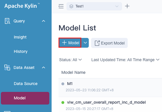 将 Model 和 Cube 合二为一成为新的 Model,不再有 Cube 的概念。在 Kylin5 中不需要先创建 Model (Join Relationship),再定义 Cube(维度和度量)。而是将两者合一,简化流程。
