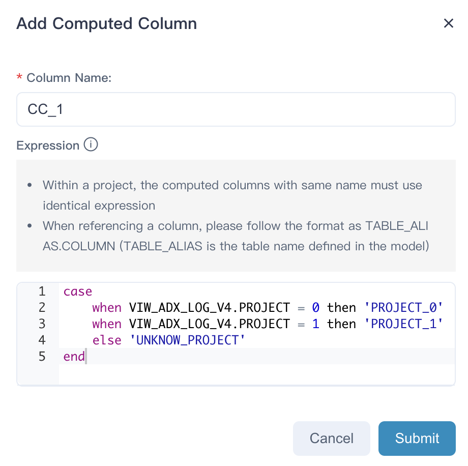 Kylin 5 支持在模型上定义 SQL 表达式,变相拥有了轻量级 ETL 能力。用户可以把新定义的表达式当成一个普通的列,基于他定义新的维度和度量,从而使得这部分表达式也被预计算引擎加速。