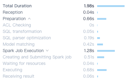 Kylin 5 记录了更加详细的查询历史信息。对于单个查询的耗时明细,记录了每个 Step 的耗时。对于慢查询根据此图可以快速定位性能瓶颈。