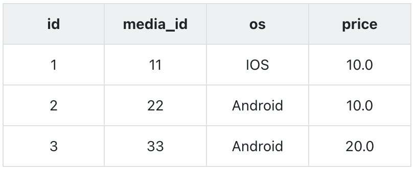行权限:用户 A 可以查询所有数据(3 行),用户 B 只能查询 os=IOS 的数据;