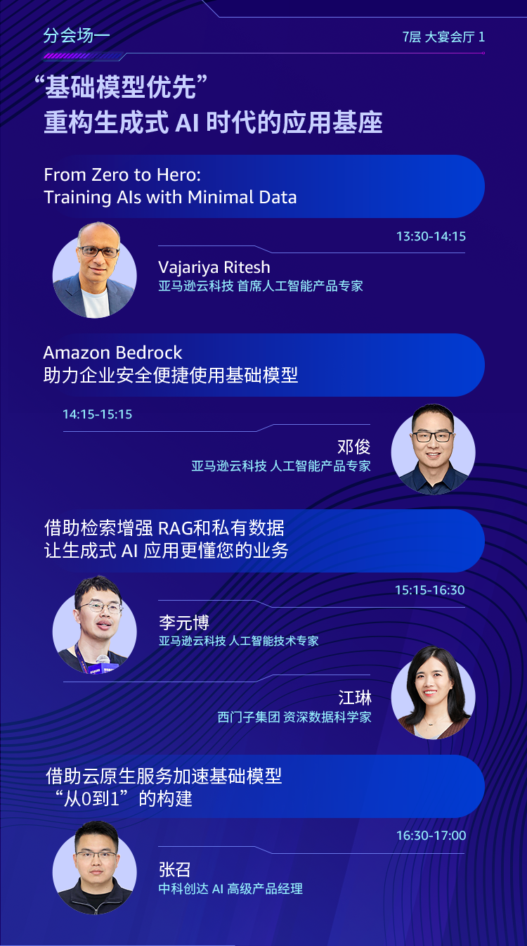 除大会分享外,“首届中国生成式 AI 应用创新挑战赛”总决赛将在 INNOVATE 大会上精彩开赛!本次大赛由北京市教育委员会指导、北京科学教育发展基金会、亚马逊云科技、清华大学人工智能研究院基础模型研究中心等多家大语言模型相关机构和科技公司携手发起,将持续影响1000家创新企业,以及中国100,000名个人开发者,共同基于生成式AI进行创新。决赛现场更有超多亮点等你来: