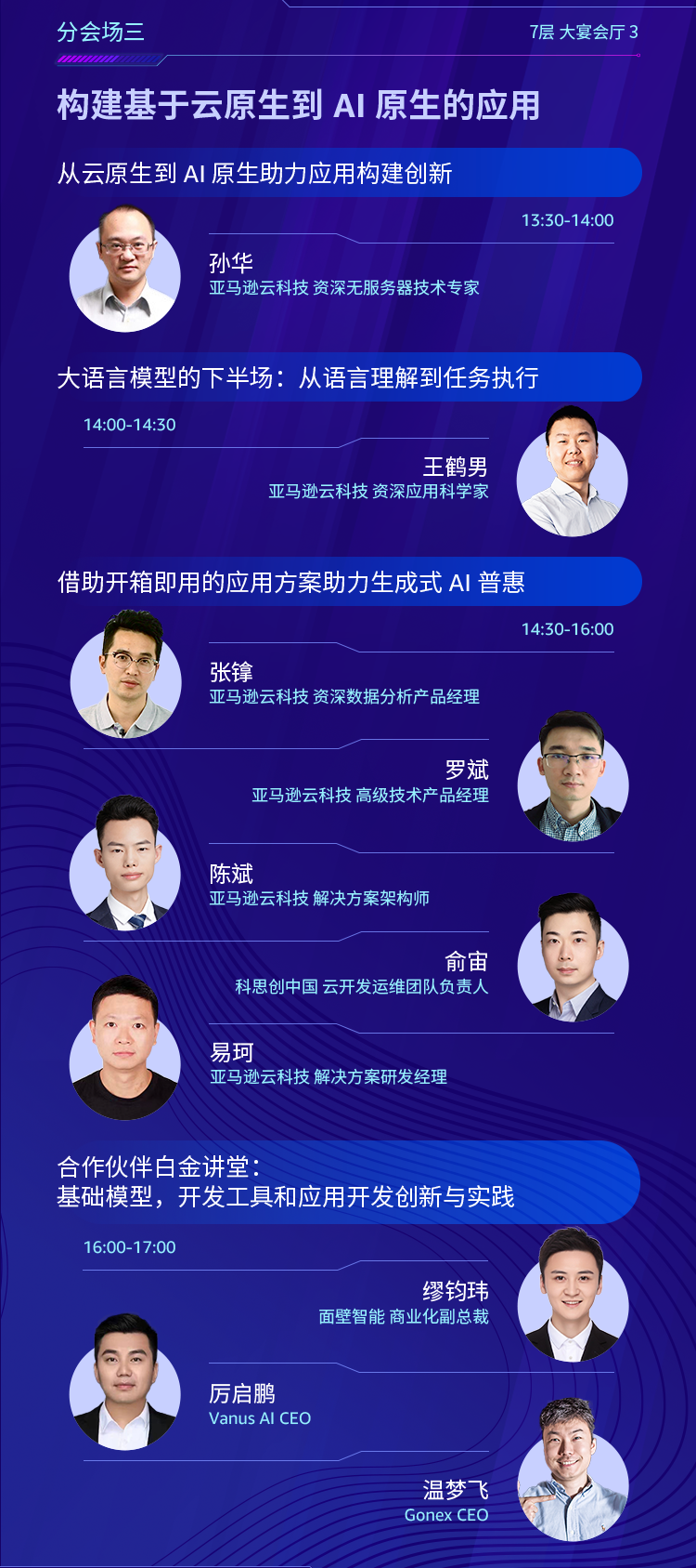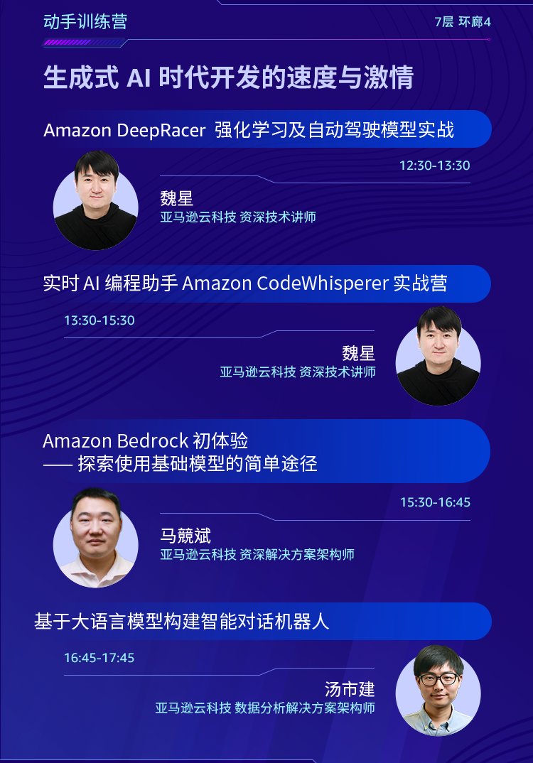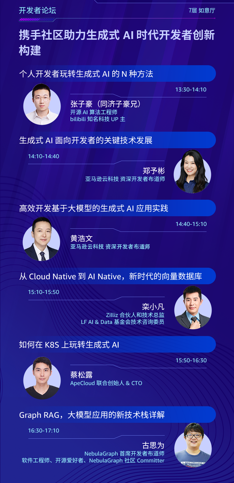 除大咖云集外,会上更有技术分论坛、开发者社区、动手训练营、生成式 AI 早鸟课、生成式 AI 应用创新挑战赛等你发掘体验!
