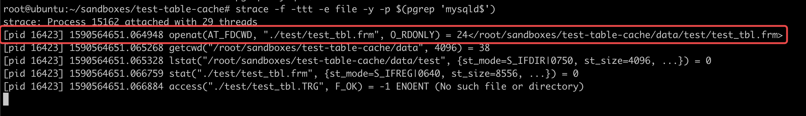 可以看到开始命中 table cache 了。在 strace 的输出中,也没有抓到新的文件操作。