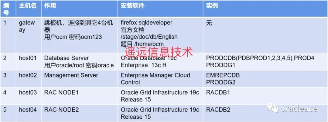 考试环境有5台服务器,姚远老师在进行19c OCM培训时会提供和考试环境一模一样的5台虚拟机供学员进行练习。
