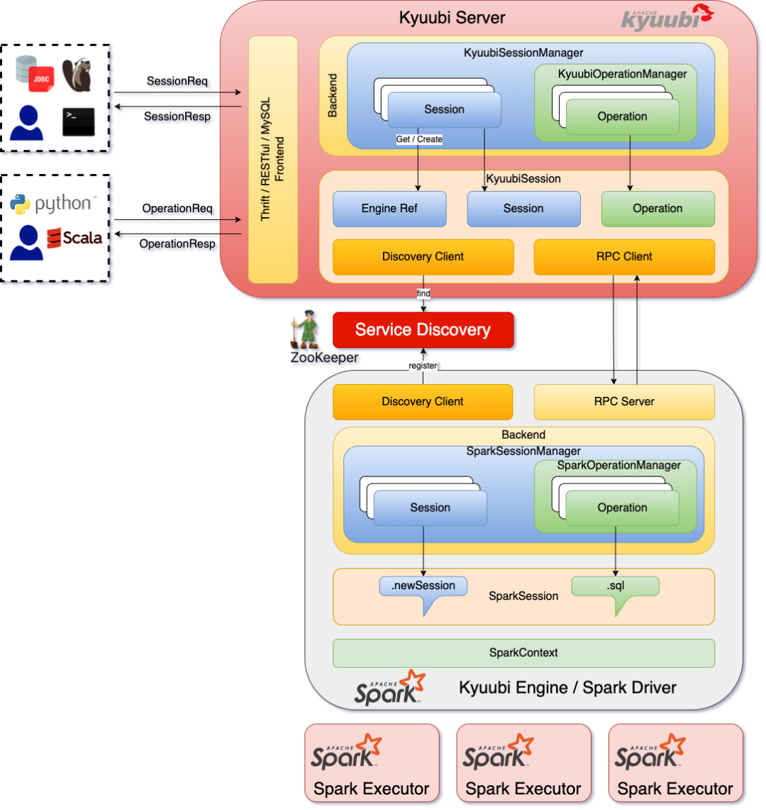 这样开箱即用的客户端,也可选择 DBeaver 或 JDBC/REST 之类的开放工具或协议。Kyuubi Server 是最为核心的模块,主要职责为:
