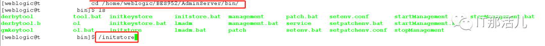 进入/home/weblogic/BES952/AdminServer/bin,执行./initstore, 初始化详细操作步骤:当出现 Data Storage Initialization Completed,表示初始化成功。路径:/home/weblogic/BES952/AdminServer/bin,执行命令: