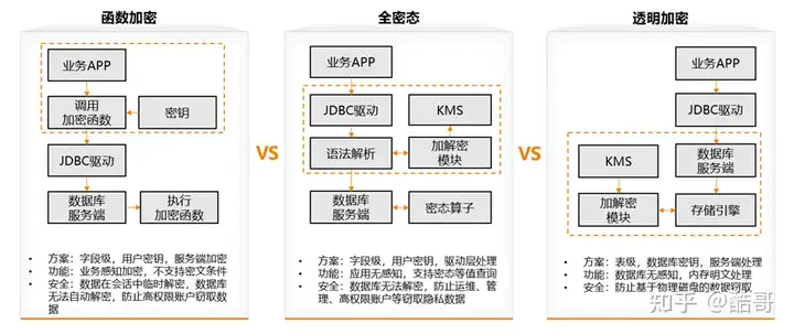 - 函数加密:是用户把密钥给到数据库,数据库在执行函数时做一个加密动作,是在数据库里加密。