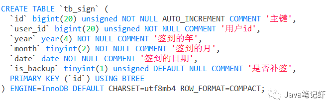 签到功能我们可以使用MySQL来完成,比如下表: