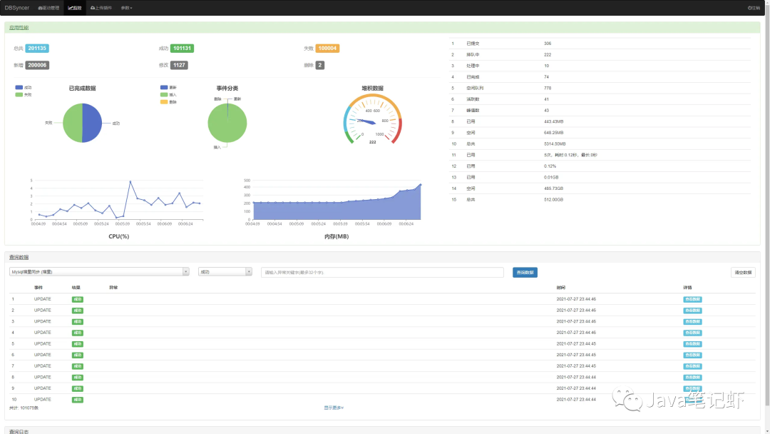 实时监控,驱动全量或增量实时同步运行状态、结果、同步日志和系统日志