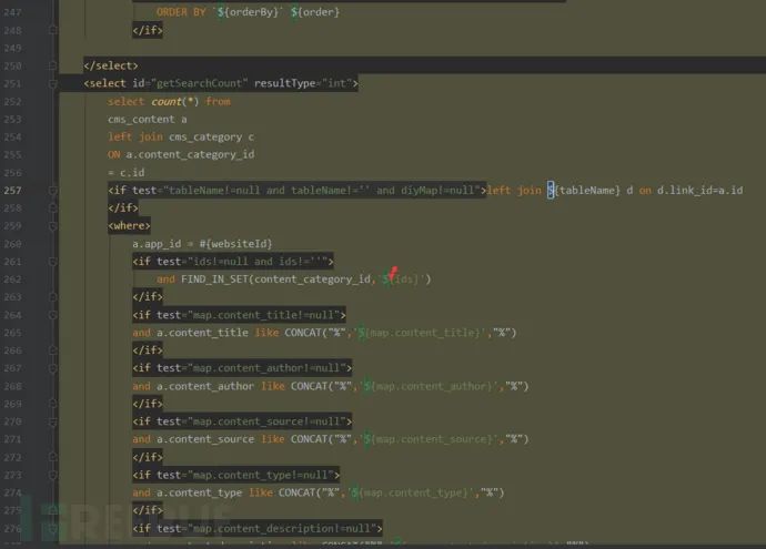根据文件名带Dao的xml为我们需要的,以IContentDao.xml为例,双击打开,ctrl +F 搜索$,查找到16个前三个为数据库选择,跳过,