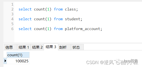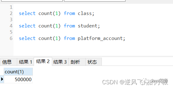 本篇准备了3张表,分别为学生(student)表,班级(class)表,账户(account)表,各自有50万,1万和10万条数据用于测试;