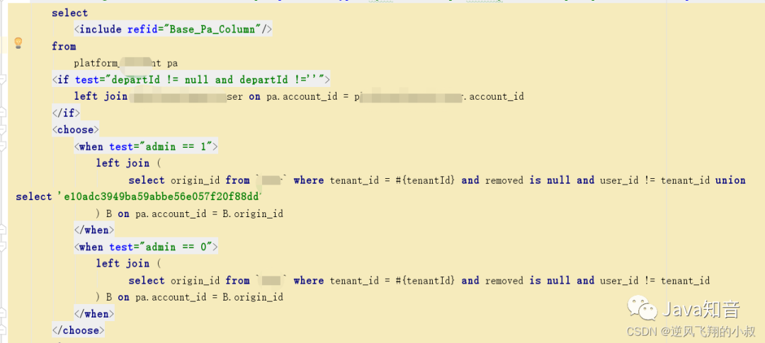 在下面的这段sql中,优化前使用的是子查询,在一次生产问题的性能分析中,发现某个tenant_id