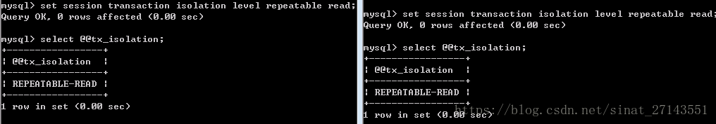 (1)开启两个客户端,修改事务隔离级别为可重复读