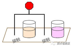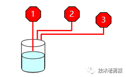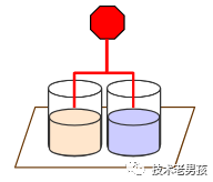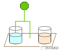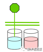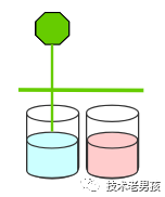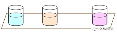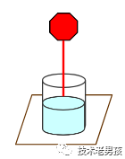 下图是一条红色的激光,横在了所有杯子上方。