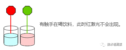 另一方面,没有任何触手在饮料杯或空地上时,红激光才有可能出现。