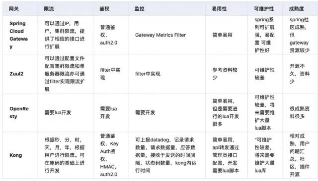 例如:Kong的性能虽然非常不错,适合做流量网关,但是对于复杂的业务系统不建议用Kong,因为会给系统的性能带来缺陷。再如SpringCloud GateWay/Zuul2对于Java技术栈来说比较方便,但是对于lua开发语言不方便。