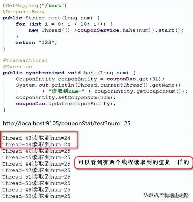 其实,这里加分布式锁就是将多线程请求转成单线程请求,因为每次只有一个线程获得锁并执行,其余都被阻塞了。