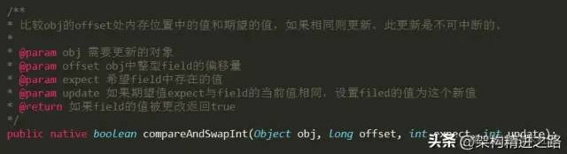 在Java中,一个线程想修改某个变量的值,那么第一步是将变量的值从主内存中读取到自己工作内存中,然后修改,最后写回主内存。这个过程可以归结为:读取——修改——写入,在写回内存的时候可能当前内存中那个值已经发生了变化,这个时候如果继续写则会覆盖别人的数据,只有当内存中的那个值和它修改之前读到的那个值一样,才可以写入。这个跟数据库是一样的。Java中通过Unsafe中compareAndSwapObject这样的方法类实现的,它直接调用CPU指令。